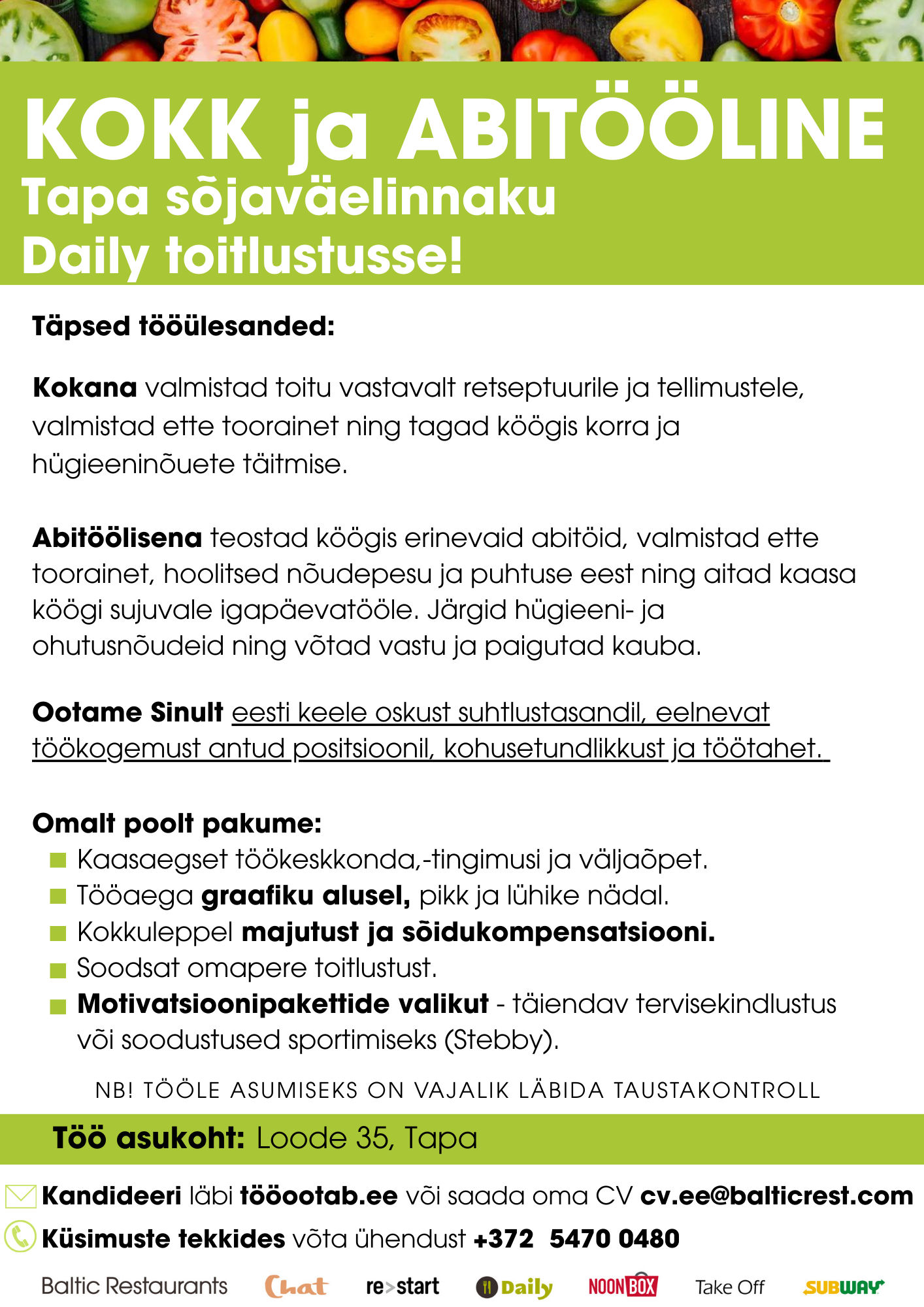 Tule tööle Baltic Restaurantsi!