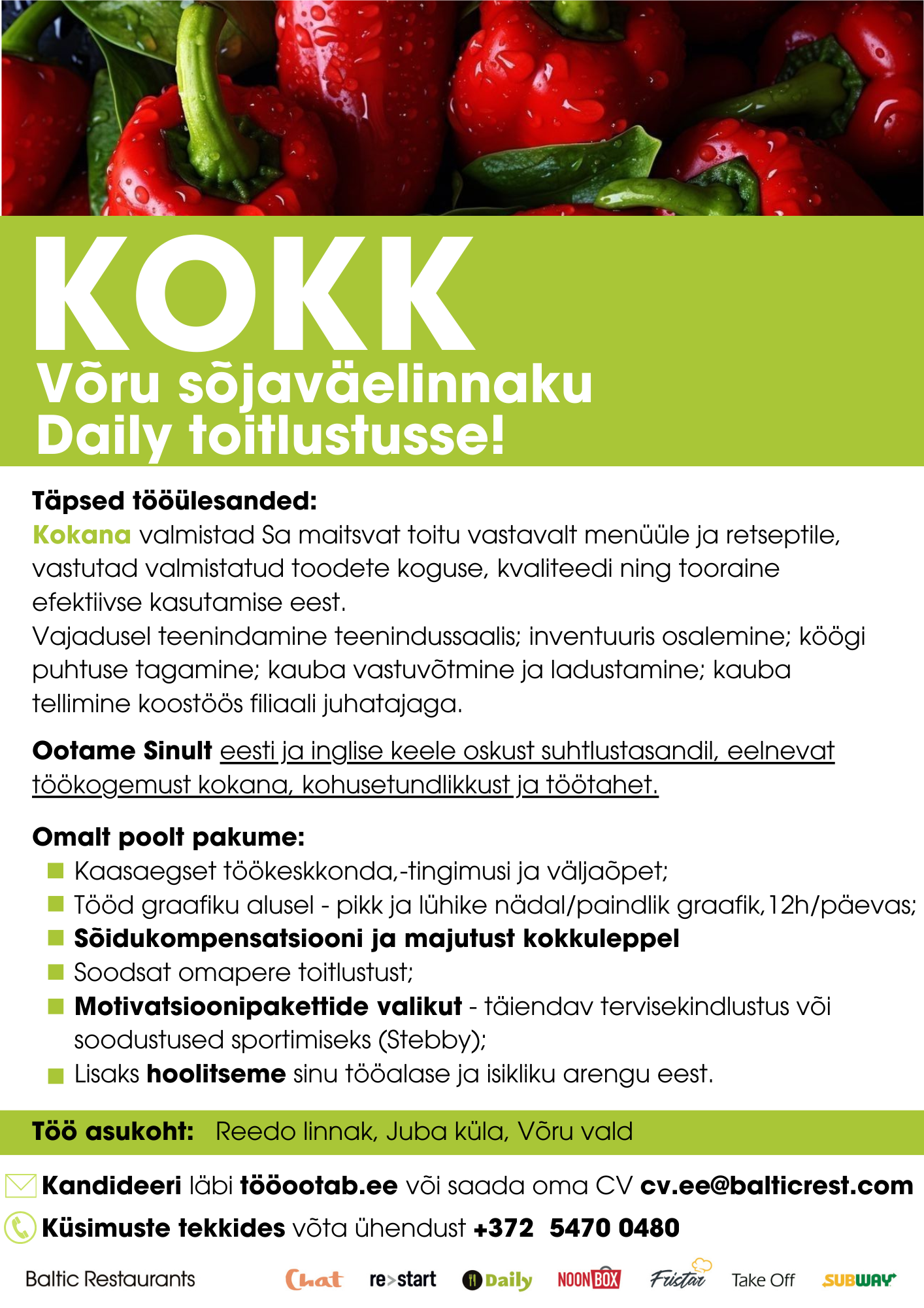 KöögitöölisenaTeenindajanaKokanaJuhatajanaPraktikandinaLaeval